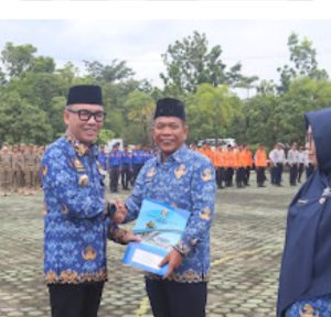 WAYKANAN,presisinews24.com, – Bupati Way Kanan H. Raden Adipati Surya, S.H.,M.M Serahkan SK Pemberian Kenaikan Pangkat Pengabdian, Pemberhentian dan Pemberian Pensiun Saat Gelar Upacara Peringatan HUT Pegawai Republik Indonesia (KORPRI) Ke-53 Tingkat Kabupaten Way Kanan Tahun 2024 di Lapangan Buway Pemuka, Senin (02/12/2024).