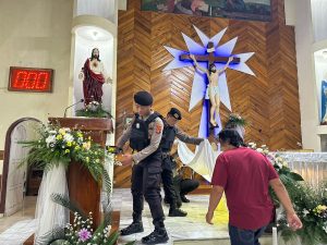 Seperti malam ini, petugas yang telibat dalam Operasi Lilin Krakatau 2024 Polres Way Kanan bersama Fokompimda, Polsek Baradatu dan Koramil Baradatu melakukan pengamanan di tempat ibadah di Gereja Paroki Keluarga Kudus Baradatu,”ujarnya.