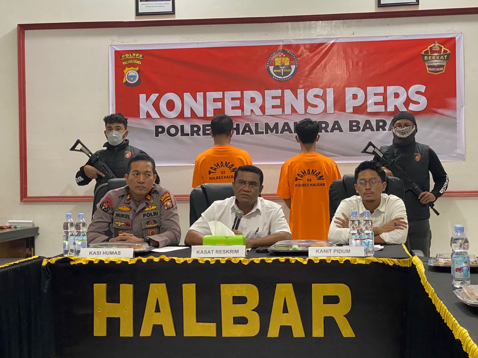 Konferensi pers dibuka oleh Kasat Reskrim Polres Halmahera Barat, yang turut menghadirkan dua tersangka, yakni Sdr. Yafet Sidigol dan Sdr. Yansen Sidigol, yang terlibat dalam kasus pengeroyokan dan atau penganiayaan. Kedua tersangka dikawal oleh dua personel Resmob Polres Halmahera Barat selama acara tersebut.
