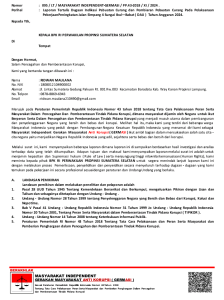 Isi dari Surat Tanggapan Atas Laporan Pengaduan tersebut adalah ” Menanggapi surat pengaduan Saudara tanggal 20 November 2024 perihal Laporan atas dugaan indikasi kecurangan pada pelaksanaan pekerjaan peningkatan jalan simpang 4 Sungai Ibul-Babat ( DAU ) Kab. PALI TA 2024, dapat kami sampaikan bahwa atas permasalahan tersebut akan kami pelajari dan menjadi informasi dalam merencanakan pemeriksaan.