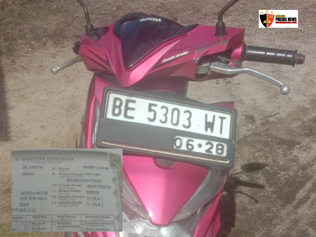 WAY KANAN,presisinews24.com – Berita Kehilangan yang yang disampaikan warga Kampung Kayubatu Kecamatan Gunung Labuhan Way Kanan atas surat kendaraan STNK Motor beat Magenta Hitam Dengan Nama tertera pada STNK, Senin (07/07/2025).