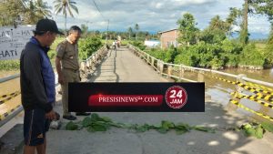 PINRANG_SULSEL,presisinews24.com, –Jembatan Bila, penghubung Desa Tapporang dan Kelurahan Kassa, Kecamatan Batu Lappa, Kabupaten Pinrang, berada dalam kondisi kritis dan terancam roboh. Warga setempat telah memasang tanda peringatan bahaya dan memblokir jalan bagi kendaraan bertonase berat.Selasa.(15/04/2025).