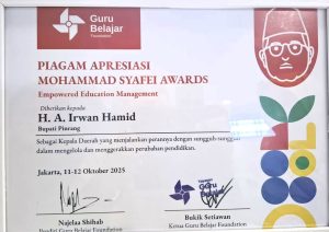Bupati Irwan menyampaikan apresiasinya secara terpisah, “Penghargaan ini bukan hanya sebuah pengakuan, tetapi juga menjadi penyemangat bagi kami untuk terus menghadirkan kebijakan pendidikan yang berpihak pada masyarakat.”