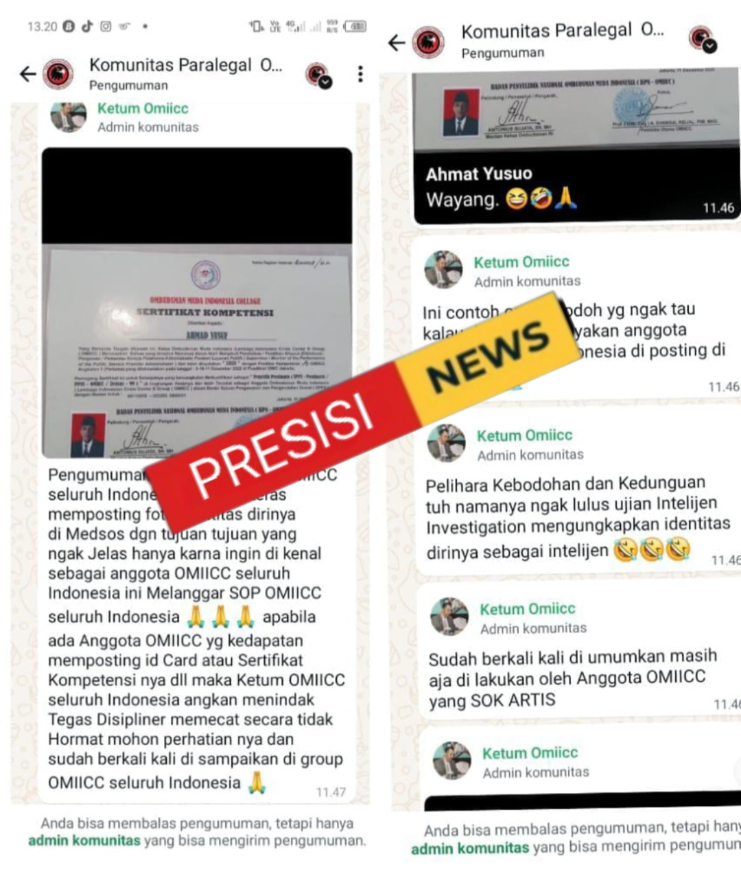 “Ini contoh orang bodoh yang enggak tahu kalau dia membahayakan anggota OMIICC seluruh indonesia diposting di FB dll”