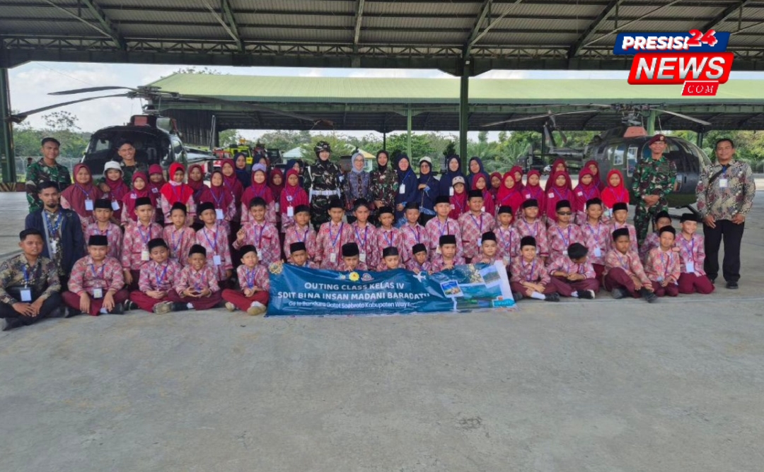 Kunjungan Plt. Bupati Way Kanan dan SD IT Bina Insani, Skadron 12/AJY Pamerkan Alutsista Helikopter Penerbad