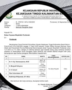 Pada tanggal.29 dan 30 September 2025 kemarin pihak Penyidik Asisten Tindak Pidana Khusus Kejaksaan Tinggi Kalimantan Barat,
