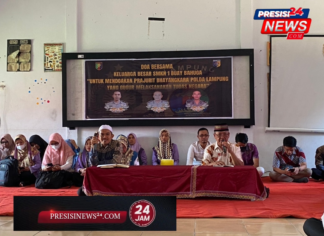 WAY KANAN,presisinews24.com, – Pasca terjadinya peristiwa gugurnya 3 (tiga) Personel Polres Way Kanan dalam melaksanakan tugas pada tanggal 17 Maret 2025 lalu. Keluarga besar SMKN 1 Buay Bahuga menggelar doa bersama di ruang Aula sekolah setempat. Kamis (20/03/2025).