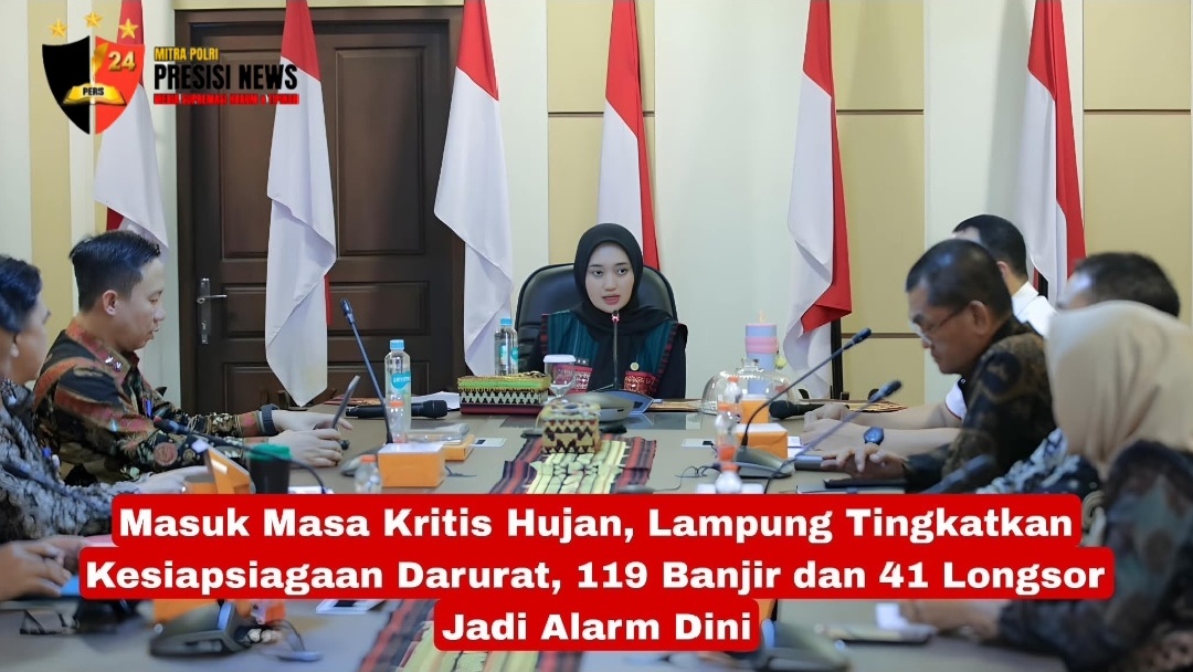 PRESISINEWS24.COM_Lampung ~ Pemerintah Provinsi (Pemprov) Lampung meningkatkan kesiapsiagaan darurat menghadapi intensitas musim hujan yang diprediksi kritis mulai Oktober 2025 hingga awal 2026.