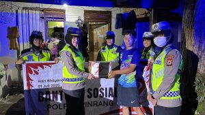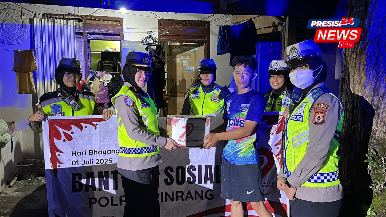 PINRANG,SULSEL,presisinews24.com – Dalam rangka memperingati Hari Ulang Tahun (HUT) Bhayangkara ke-79, Polres Pinrang menggelar patroli gabungan yang diiringi penyaluran bantuan sosial (bansos) kepada masyarakat kurang mampu di wilayah hukumnya. Kegiatan Sabtu malam ini merupakan wujud nyata kepedulian Polri terhadap masyarakat dan upaya menjaga stabilitas keamanan menjelang HUT Bhayangkara.