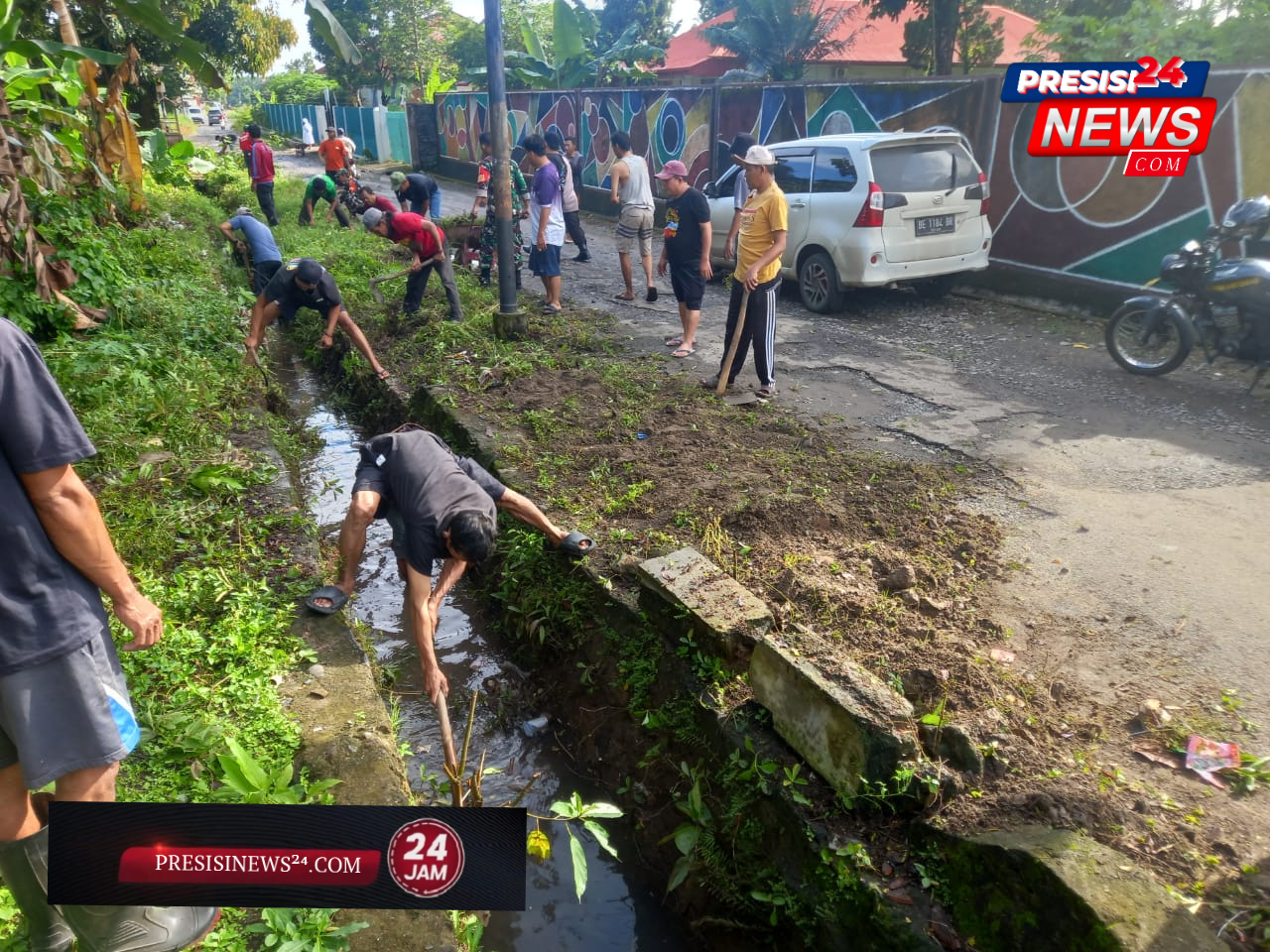 Polsek Baradatu dan Masyarakat Gotong Royong Bersihkan Got di Baradatu
