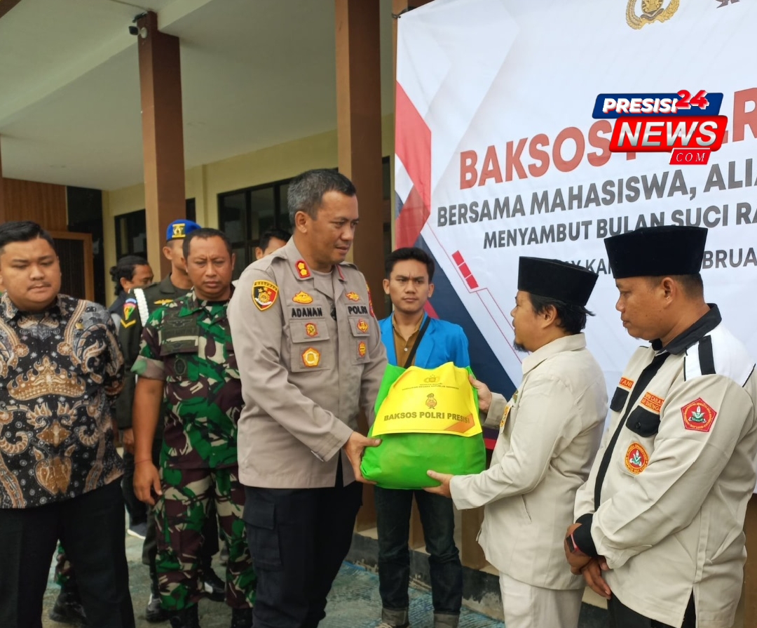 Kapolres Way Kanan AKBP Adanan Mangopang menyampaikan penyaluran bakti sosial Polri Presisi Polda Lampung bersama Mahasiswa, Aliansi BEM dan OKP (Organisasi Kemasyarakatan Pemuda) dalam rangka menyambut Bulan Suci Ramadhan 1446 H dan mudah – mudahan akan berlanjut .