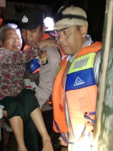 Petugas gabungan dari Polsek Bandar Negeri Suoh, BPBD, Babinsa, dan aparat kecamatan bersama warga bahu-membahu mengevakuasi penduduk yang rumahnya terendam. Dalam situasi gelap gulita, mereka menyeberangi arus deras untuk menyelamatkan warga yang masih bertahan.