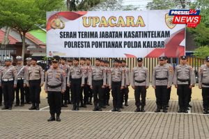 PONTIANAK_KALBAR, – Polresta Pontianak menggelar upacara serah terima jabatan (sertijab) Kasat Intelkam Polrrsta Pontianak dari Kompol Abdul Malik, S.IP., M.Sos. kepada AKP Reynaldi Guzel, S.I.K., yang sebelumnya menjabat sebagai Kasat Intelkam Polres Mempawah. Upacara berlangsung khidmat di halaman Mapolresta Pontianak dan dipimpin langsung oleh Kapolresta Pontianak, Kombes Pol Adhe Hariadi, S.I.K., M.H., pada Sabtu (31/05/2025)